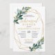 Green eucalyptus gold geometric rehearsal dinner invitation