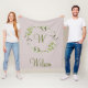 Green Eucalyptus & Leaf Wreath Script Monogram Fleece Blanket