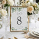 Green Eucalyptus Leaves Wedding Table Number Card.
