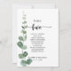 This green eucalyptus table number 5 seating chart is perfect for a simple wedding. The design features watercolor hand-drawn elegant botanical eucalyptus branches and leaves.