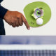 Funny ping pong paddle done in green, with graphics of a torn hole, in the middle, with a green eye ball looking out. Personalise the black text to read what you want. Makes a great gift idea.