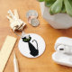 A green eyed black cat sitting up straight. This design looks really effective on this Keychain
