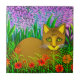 Green Eyed Cat in a Flower Garden Ceramic Tile