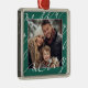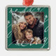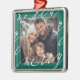 Green Fancy Script "Merry" Christmas Photo Metal Ornament