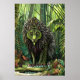 Large green fantasy lion beast sitting in the forest with a forest the background. This is a AI generated art.