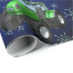 Green Farm Tractors on Blue Christmas Wrapping Paper