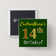 Green, Faux Gold 14th Birthday, With Custom Name 15 Cm Square Badge