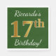 Green, Faux Gold 17th Birthday + Custom Name Napkin