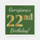 Green, Faux Gold 22nd Birthday + Custom Name Napkin
