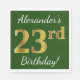 Green, Faux Gold 23rd Birthday + Custom Name Napkin