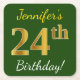 Green, Faux Gold 24th Birthday + Custom Name Square Paper Coaster