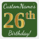 Green, Faux Gold 26th Birthday + Custom Name Square Sticker