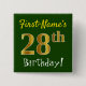 Green, Faux Gold 28th Birthday, With Custom Name 15 Cm Square Badge