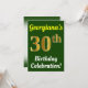 Green, Faux Gold 30th Birthday Celebration + Name Invitation