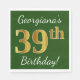 Green, Faux Gold 39th Birthday + Custom Name Napkin