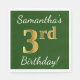 Green, Faux Gold 3rd Birthday + Custom Name Napkin