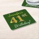Green, Faux Gold 41st Birthday + Custom Name Square Paper Coaster