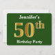 Green, Faux Gold 50th Birthday Party + Custom Name Invitation