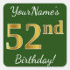 Green, Faux Gold 52nd Birthday + Custom Name Square Sticker