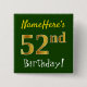 Green, Faux Gold 52nd Birthday, With Custom Name 15 Cm Square Badge
