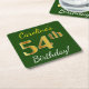 Green, Faux Gold 54th Birthday + Custom Name Square Paper Coaster