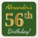 Green, Faux Gold 56th Birthday + Custom Name Square Paper Coaster
