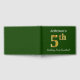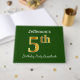 This guest book design features the ordinal number "5th" with a faux gold-like appearance. It also features a personalised name, and a green coloured background. It could be used at a party for somebody celebrating their fifth birthday. [~Z0000056]