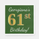 Green, Faux Gold 61st Birthday + Custom Name Napkin