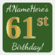 Green, Faux Gold 61st Birthday + Custom Name Square Sticker