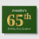 Green, Faux Gold 65th Birthday Party + Custom Name Guest Book