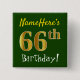 Green, Faux Gold 66th Birthday, With Custom Name 15 Cm Square Badge