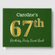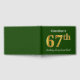 This guest book design features the ordinal number "67th" with a faux/imitation gold-like appearance. It also features a customised name, and a green coloured background. It could be used at a party for somebody celebrating their sixty seventh birthday. [~Z0000056]