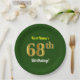 Green, Faux Gold 68th Birthday + Custom Name Paper Plate