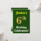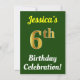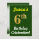 Green, Faux Gold 6th Birthday Celebration + Name Invitation