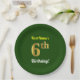 Green, Faux Gold 6th Birthday + Custom Name Paper Plate