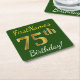 Green, Faux Gold 75th Birthday + Custom Name Square Paper Coaster