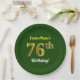Green, Faux Gold 76th Birthday + Custom Name Paper Plate
