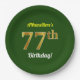 Green, Faux Gold 77th Birthday + Custom Name Paper Plate