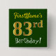 Green, Faux Gold 83rd Birthday, With Custom Name 15 Cm Square Badge