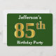 Green, Faux Gold 85th Birthday Party + Custom Name Invitation