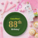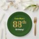 Green, Faux Gold 88th Birthday + Custom Name Paper Plate
