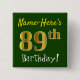 Green, Faux Gold 89th Birthday, With Custom Name 15 Cm Square Badge