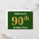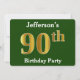 Green, Faux Gold 90th Birthday Party + Custom Name Invitation