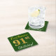 Green, Faux Gold 91st Birthday + Custom Name Square Paper Coaster