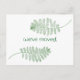 Painting of two floating ferns, border the announcement, We've moved, on custom new address, botanical postcards. There is a template placeholder on the back to personalize with your new address details. The text is printed in green in a flowy kind of font. Thank you for shopping at CherylsArt on Zazzle.