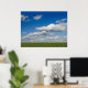 green filed, blue sky, white cloud poster