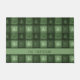 A green plaid pattern with decorative watercolor texture and minimalist fir tree silhouettes that add a timeless festive accent. The design includes a personalizable text area for a name or other custom text, creating a classic look perfect for the Holiday season.