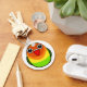 A cartoon drawing of a wild type green fischer lovebird (agapornis fischeri). This keychain is a cute collection for every lovebird lover!
