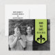 Modern and simple Fleur De Lis Banner Save the Date Postcard in tender shoots green featuring a scallop edge banner adorned with a chic damask flourish. This stylish save the date postcard is perfect for announcing your elegant wedding. Easy to customise, simply add a cute couple photo and your wedding details in the text fields provided. Click "Customise It" to find more personalisation options.