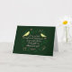 This literary greeting card features the quote “I am no bird; and no net ensnares me: I am a free human being with an independent will.” from Charlotte Brontë's Jane Eyre surrounded by a floral design featuring green leaves, blush pink flowers and yellow birds against a green background.